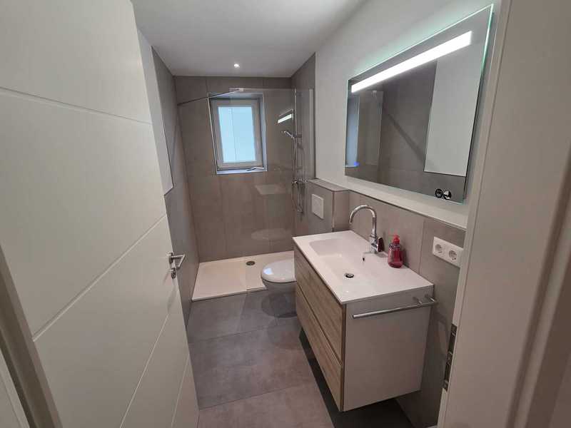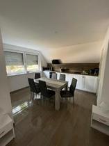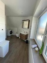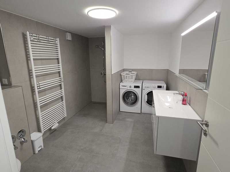 3 Schlafzimmer (3+2+2), moderne Wohnküche (Kühl-Gefrierkombi, 4-Plattenherd mit Backofen, Geschirrspüler, Mikrowelle) mit Couch und TV, 2 helle Duschbäder, Terrasse mit Sitzgelegenheit, freies WLAN, Waschmaschine und Trockner.