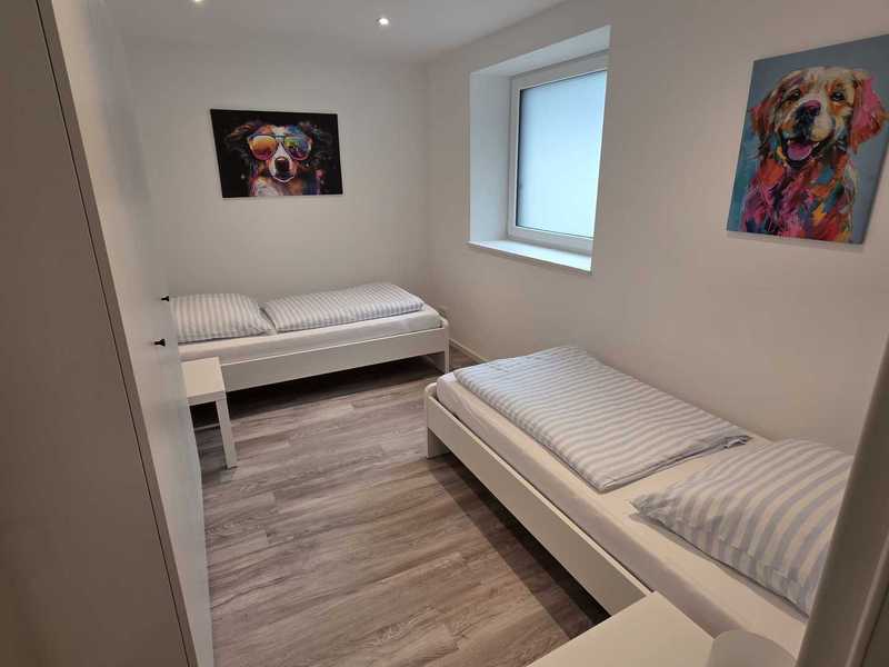 2 Schlafzimmer mit je 2 Einzelbetten, 1 Einzelzimmer, jedes Schlafzimmer mit Flachbild-TV, freies WLAN, Küche, helles Duschbad, Waschmaschine.