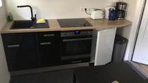 Zwei Einzelzimmer mit jeweils TV, Wohnküche mit Zugang zur Terrasse, Waschmaschine, kleines Duschbad. Kostenfreies WLAN.